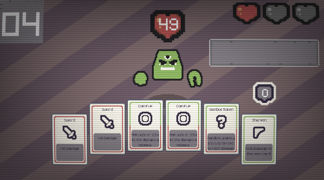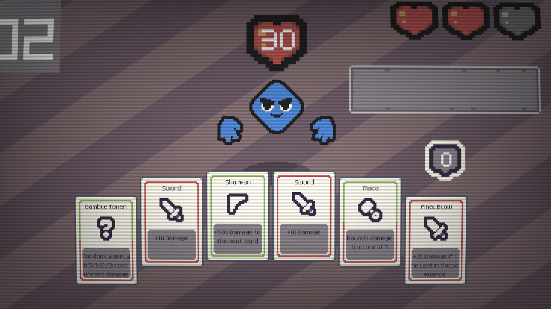 Kenney assets were used as main ones, but we modified them to fit the game. The used assets: Pixel UI Pack, Playing Cards Pack, Kenney Fonts, Shape Characters